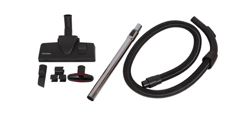 - Комплектация: пылесос, большая универсальная щетка c металлической накладкой ковер/пол, щелевая насадка 2 в 1, насадка для мягкой мебели, держатель для аксессуаров
