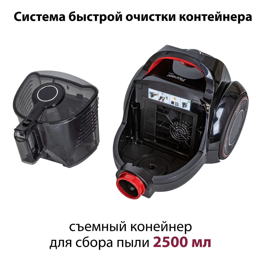 Пылесос Pioneer VC355C с мотором повышенной эффективности и увеличенным радиусом действия отлично подойдет для эффективной и быстрой уборки любых помещений. 4-ступенчатая система фильтрации гарантирует очистку даже от мельчайших частиц пыли. Пылесос оснащен металлической телескопической трубкой и широким набором насадок: универсальная щетка «ковер/пол», мини-щетка ТУРБО, щелевая насадка, насадка для штор и насадка для мягкой мебели. На корпусе расположен поворотный регулятор мощности всасывания. Длины кабеля (6 метров) достаточно для свободной уборки помещения до 9 метров. Уход за пылесосом предельно прост: моющиеся фильтры промываются холодной водой, а мусор из контейнера увеличенного объема 2,5 литра вытряхивается в мусорное ведро. Для компактного хранения предусмотрена вертикальная парковка пылесоса и держатель для насадок, крепящийся к телескопической трубке.