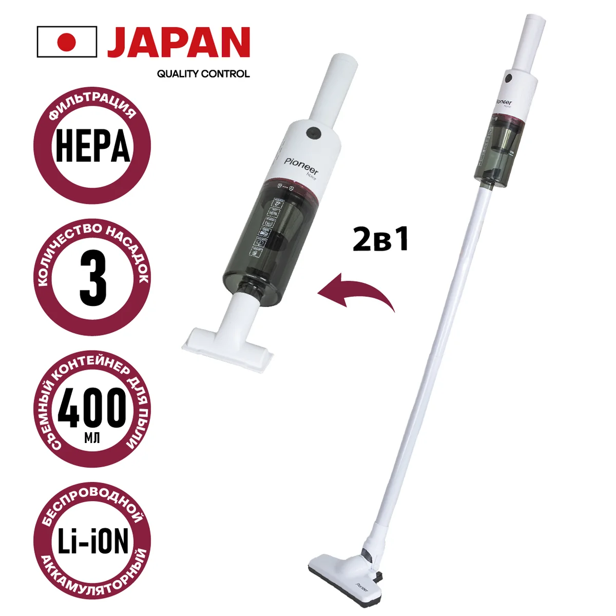 Вертикальный пылесос Pioneer VC454S white