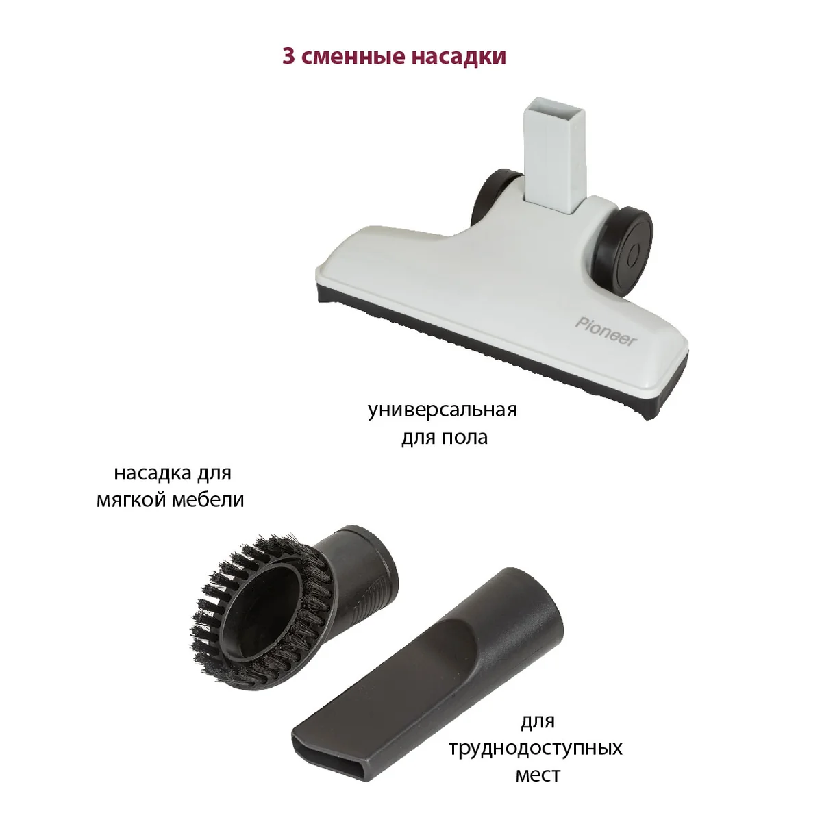 - Комплектация: пылесос, щетка для пола, круглая насадка, щелевая насадка для труднодоступных мест, переходник для использования насадок, гарантийный талон, инструкция на русском языке