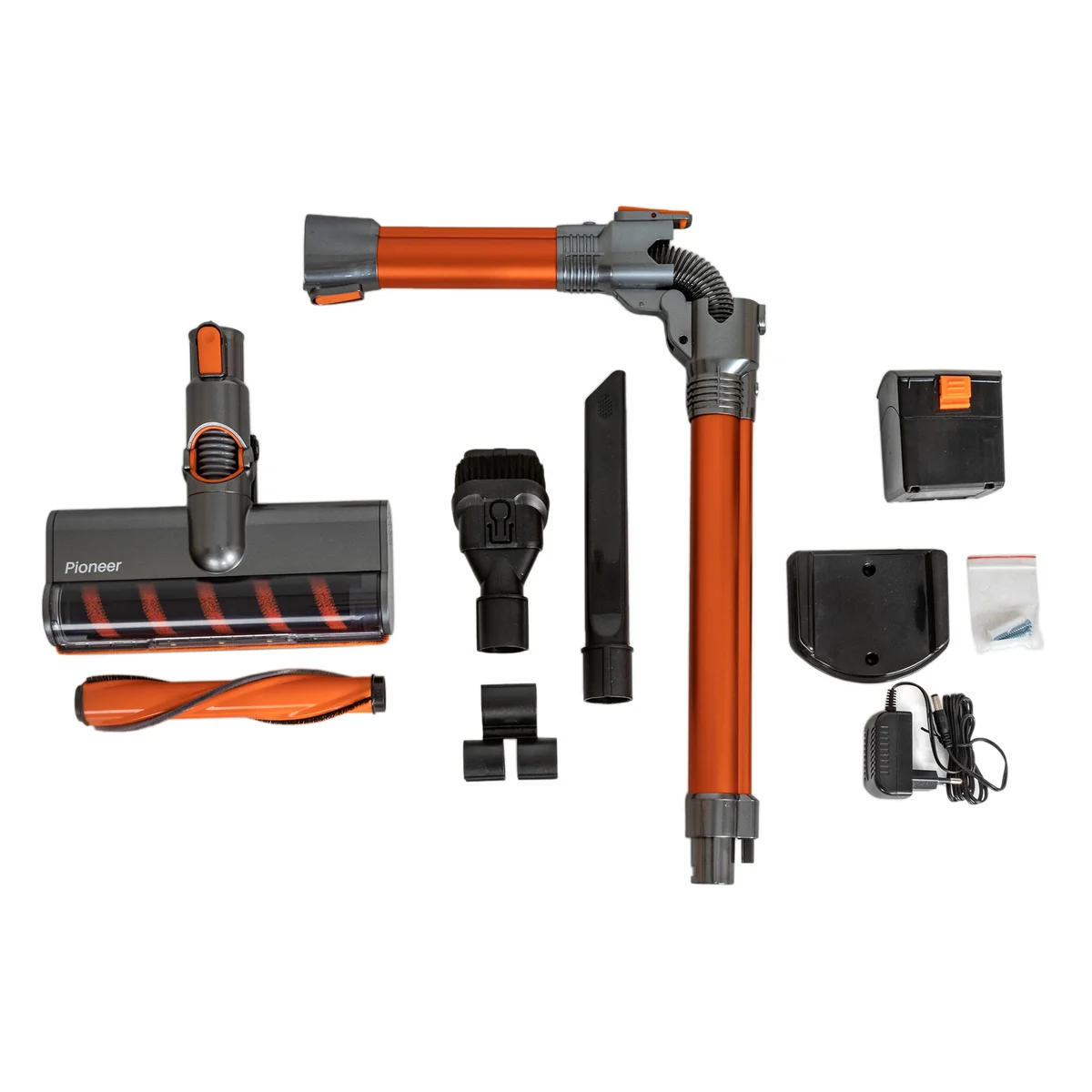 - Комплектация: пылесос, съемный аккумулятор, поворотная моторизированная щетка с LED подсветкой, дополнительный сменный ролик для твердых полов, магнитная парковочная станция, щетка для мебели, насадка для труднодоступных мест, гарантийный талон, инструкция на русском языке