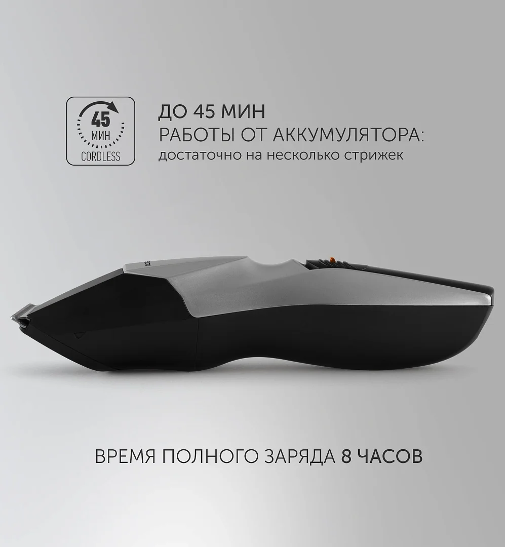 45 минут работы от аккумулятора: достаточно на несколько стрижек.