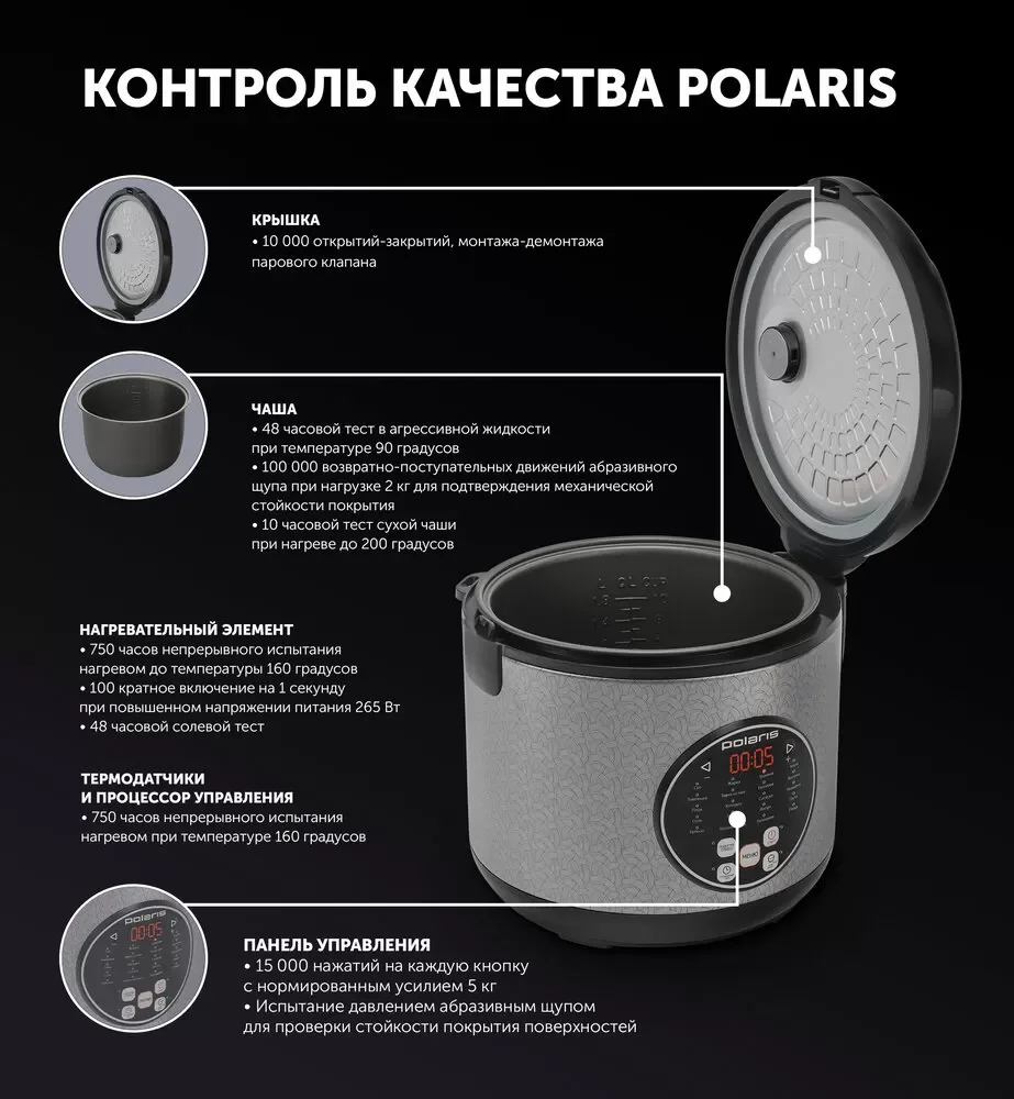 Объем чаши позволяет приготовить блюдо до 5 порций.