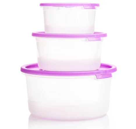 Экономным, практичным, функциональным решением вопроса хранения готовых блюд и заготовок, а также быстрого подогрева продуктов, является приобретение комплекта контейнеров "Смайл" от компании Полимербыт. Комплект состоит из 3 различных по размеру и объему высококачественных контейнеров, имеющих универсальную круглую форму. Объем контейнеров - 0,4л., 0,8л.