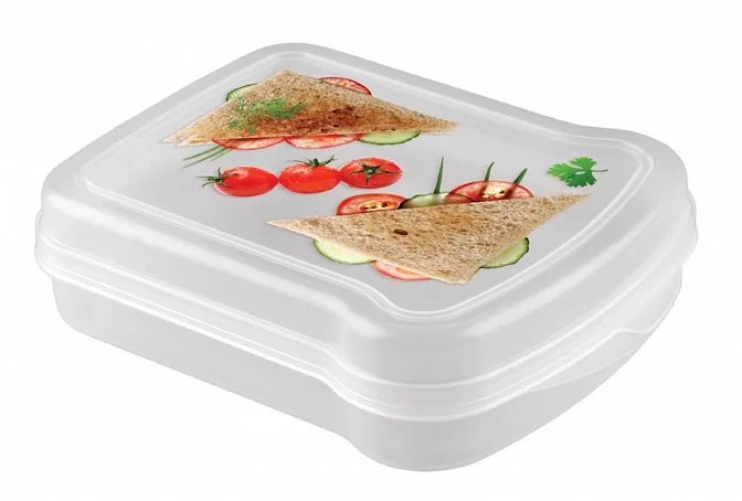 Оригинальный контейнер с ярким декором повторяет форму бутерброда, закругленные края не портят сумки, пакеты и рюкзаки. Его удобно брать с собой в дорогу, на прогулку, в школу, на работу. Контейнер плотно закрывается, поэтому не нужно переживать, что крышка случайно откроется и бутерброд выпадет.