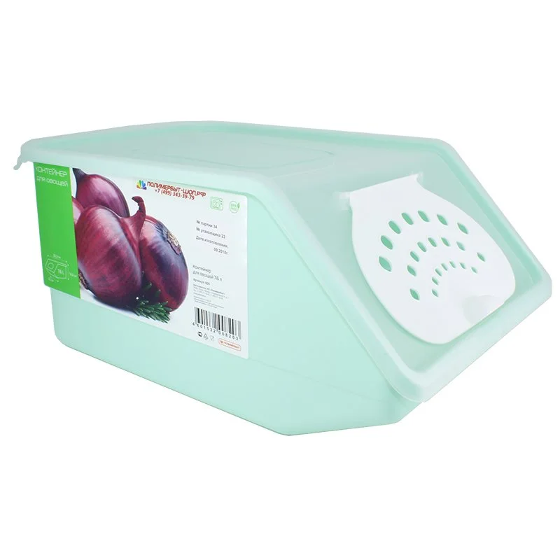 Полимербыт представляет удобный, качественный и прочный пластиковый контейнер для длительного хранения овощей. Компактный и надежный, с уникальной системой естественной вентиляции он не позволит вашим продуктам быстро потерять форму, сохранит свежесть и порадует вас и ваших близких. Удобные изделия из пластика уже давно составляют достойную конкуренцию товарам из дерева, железа и стекла. А легкая пищевая пластмасса бережно сохранит ваши продукты.