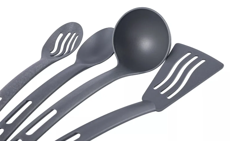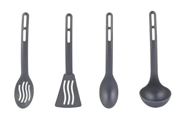 Набор кухонных принадлежностей из 4 предметов изготовлен из пищевого пластика, не имеет сторонни х запахов. Материал не содержит бисфенол-А и другие вредные вещества, он прочный и легкий. Принадлежности удобно использовать приготовления и подачи различных блюд. Изделия не повредят посуду с антипригарным, тефлоновым или керамическим покрытием. Выдерживают нагрев более 200 градусов. Материал набора не впитывает запах пищи и жир, в отличие от деревянных аналогов. Матовая поверхность изделий приятна на ощупь и не скользит в руке. Универсальный приглушенный цвет подойдет в современный интерьер. Изделия можно хранить в ящике или подвесить на крючок благодаря отверстиям на ручке.