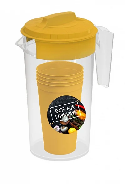 Набор ВСЕ на ПИКНИК = Кувшин 1,2л + 4 Стакана 0,4л ПОЛИМЕРБЫТ 14811