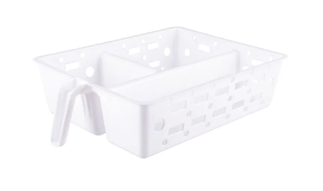 Простое решение для хранения фруктов, овощей, йогуртов, сыров и других продуктов на полках холодильника. Органайзер удобен для хранения специй и консервов на полках кухонных шкафов. Высокие стенки корпуса позволят удобно хранить соусы и высокие ёмкости. Подходит для хранения бытовых принадлежностей, предметов гигиены, различных мелочей. Благодаря боковой ручке органайзер удобно переносить или снимать с полки. Органайзер имеет 3 секции. Перфорация на стенках органайзера обеспечивает циркуляцию воздуха.