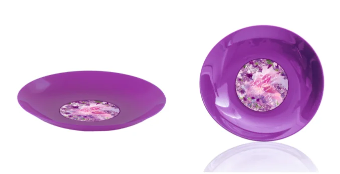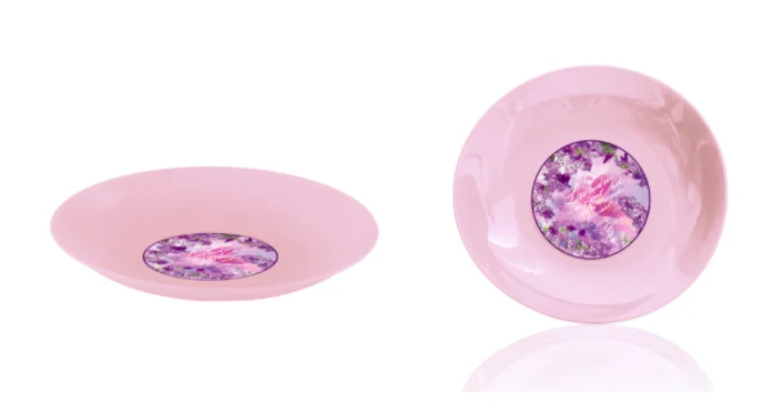 - Верхняя сторона тарелки украшена изображением с яркой цветочной композицией, нанесенной с использование технологии IML. Изображения, нанесенные подобным образом в течение длительного времени остаются яркими, сочными, насыщенными. Посуда гарантированно сохранит свой презентабельный внешний вид на протяжении всего срока службы.