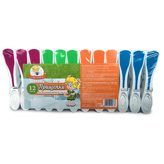 Прищепки д/деликатной одежды 8,2 см набор 12шт Умничка D0845-12