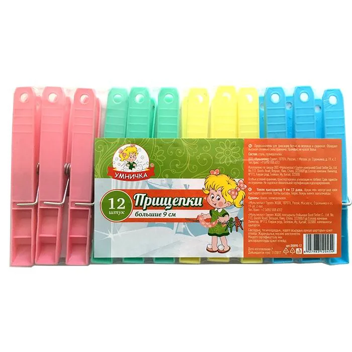 Прищепки Умничка большие 9 см набор 12 шт D0890-12