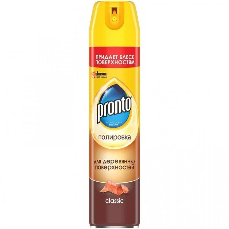 В составе полироля содержится воск, который придает мебели бриллиантовое сияние. Формула не включает химических газов, поэтому средство безопасно для людей и животных. Используя аэрозоли Pronto, вы ускоряете процесс уборки и значительно улучшаете ее качество.