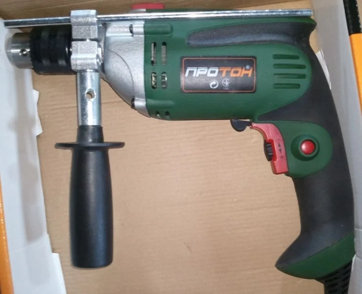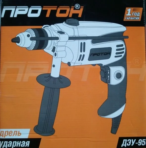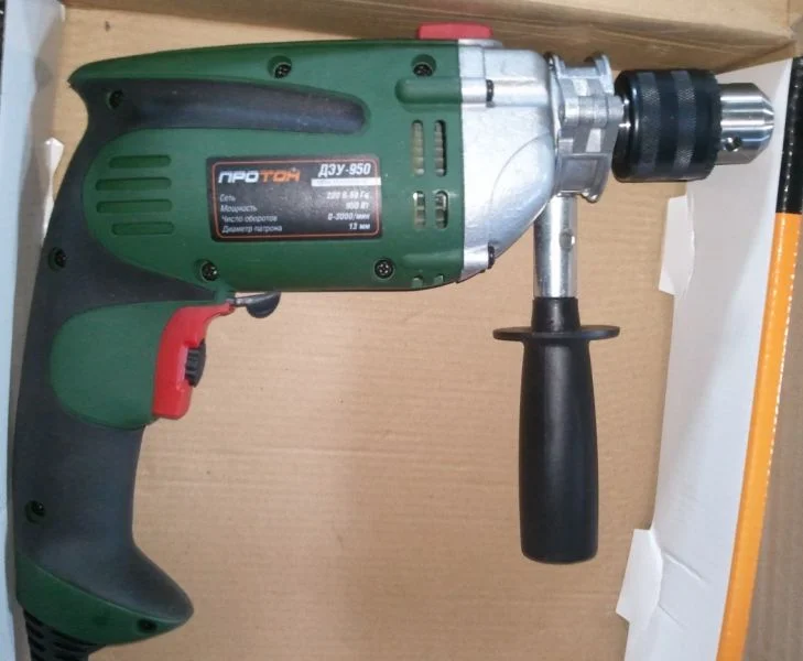 Дрель Протон ДЭУ 950 имеет мощность 950 Вт и комплектуется 13 мм патроном. Благодаря наличию реверса и возможности регулировки оборотов вы можете использовать данную дрель в качестве шуруповёрта.