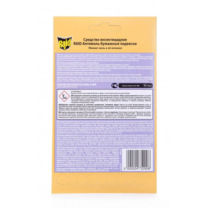 RAID Бумажные подвески 4 шт. "Антимоль "с ароматом весенних цветов 5000204752908
