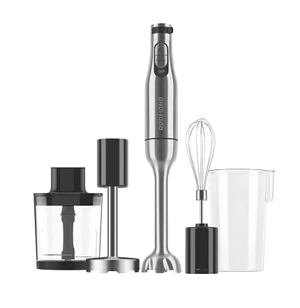 Блендер REDMOND BH401 – универсальный прибор для приготовления горячих блюд, выпечки и напитков. Сменные насадки выполняют функции миксера, кофемолки и даже мясорубки, если нужно сделать фарш из филе птицы. В комплекте 4 насадки, чаша объемом 500 мл и стакан 600 мл. Мотор блендера оснащен системой защиты от перегрева и перебоев питания.