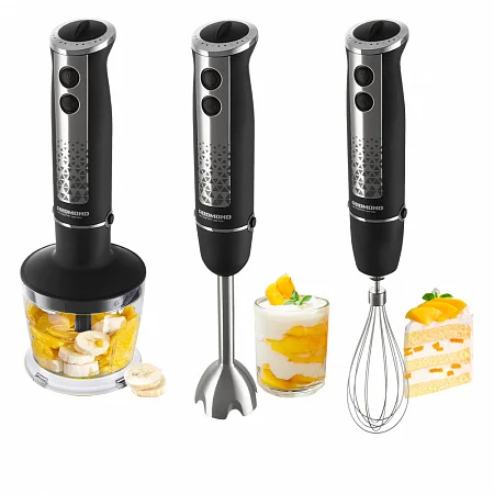 Легко меняйте насадки и готовьте с удовольствием: взбивайте нежные десерты и воздушные кремы, измельчайте сыр, нежирное мясо или овощи, готовьте крем-супы и натуральные соусы всего за несколько минут.
