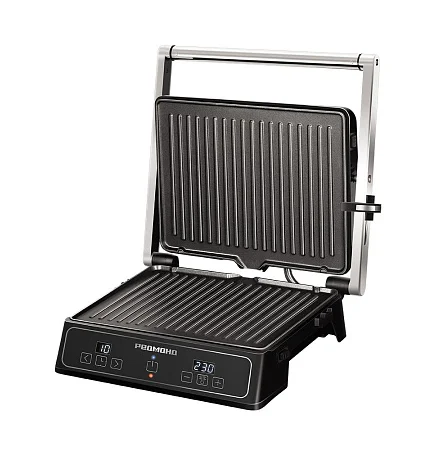 Гриль REDMOND SteakMaster RGM-M821 — многофункциональный прибор «3 в 1», который можно использовать как мощный прижимной гриль, барбекю-жаровню и компактную духовку.
