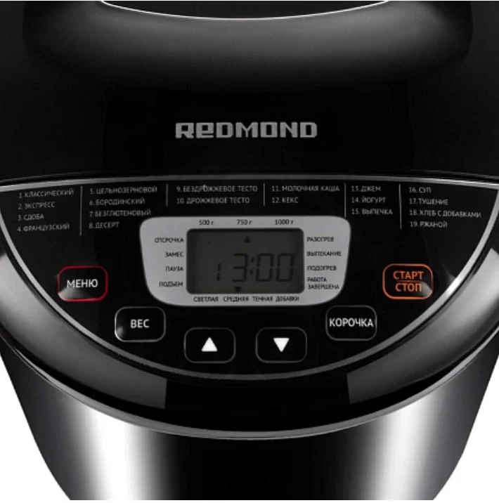 Хлебопечь RBM-1915 – это универсальный кухонный прибор 3 в 1, который помимо основной задачи – выпекания хлеба – может выполнять функции мультиварки и йогуртницы. У хлебопечи 19 автоматических программ, с помощью которых можно печь домашний свежий хлеб, варить супы, тушить вторые блюда, изготавливать домашние джемы, варить молочные каши и сквашивать натуральный домашний йогурт.