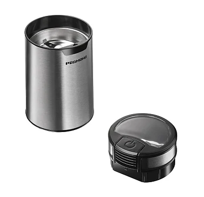 Кофемолка электрическая REDMOND CG804 в цвете «серый/металл» подходит для измельчения кофейных зёрен, специй и орехов.