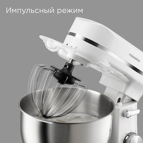 Планетарный миксер REDMOND FM603 белого цвета предназначен для тщательного взбивания и замешивания ингредиентов в большом количестве. С его помощью можно приготовить тесто для выпечки, топинги, соусы, кремы, пюре, муссы, жидкие начинки.