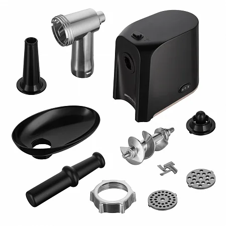 Если вы случайно загрузили в мясорубку слишком много продуктов и шнек стал вращаться медленнее или вовсе остановился, вам не придется разбирать мясорубку, чтобы разгрузить ее и продолжить работу. Достаточно включить реверс – шнек начнет обратный ход, переместит мясо обратно к загрузочному отверстию, и вы сможете быстро убрать излишки продуктов.