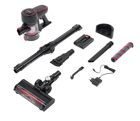 В комплекте: адаптер питания, пылесос, аккумулятор, руководство по эксплуатации, сервисная книжка, щёточка для очистки, щелевая насадка, турбощётка, насадка «2 в 1», настенное крепление, трубка-удлинитель Flex Tube и другие аксессуары.