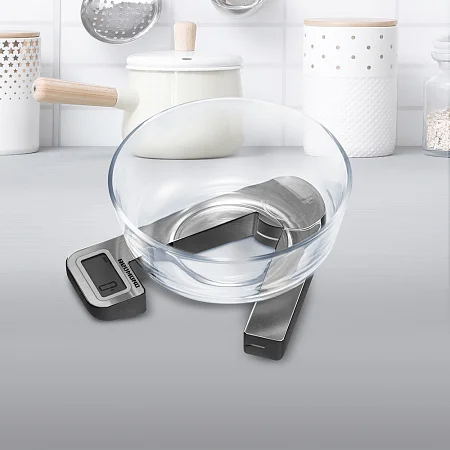 RS-758 подходит для измерения веса продуктов от 5 г до 5 кг в мелкой таре или емкостях широкого диаметра. Индикатор на дисплее подскажет, если предельный вес продукта для взвешивания превышен. Чтобы поместить крупный предмет на весы, увеличьте угол раскрытия лучей весов. В сложенном виде размер весов из высококачественной нержавеющей стали составляет 22х6,6 см, его вес всего 180 г. Такие габариты позволят удобно хранить устройство в любом уголке кухни.