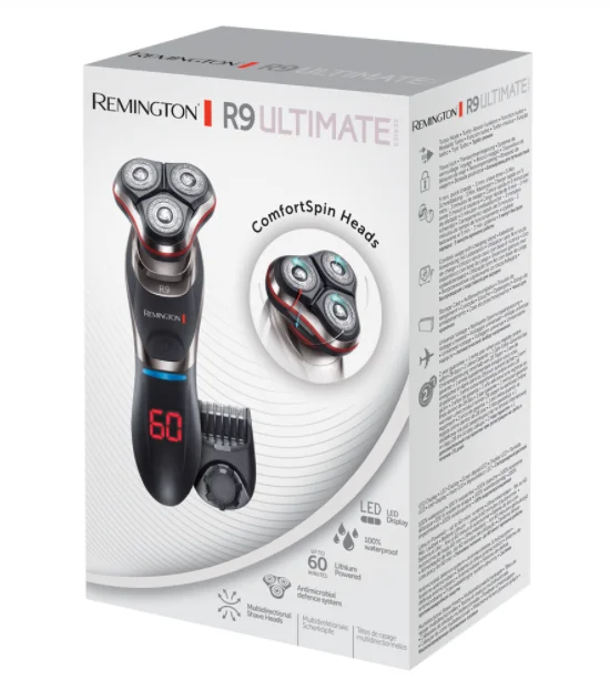 Представляем роторную бритву R9 из серии Ultimate, которая обладает не только премиальным дизайном, но и нашей самой современной и передовой технологией бритья. Эта бритва, выполненная в смелом черном цвете с модным хромом и красной отделкой Remington, станет заметой вещью в вашей ванной комнате и перевернет ваше представление о рутинном бритье.