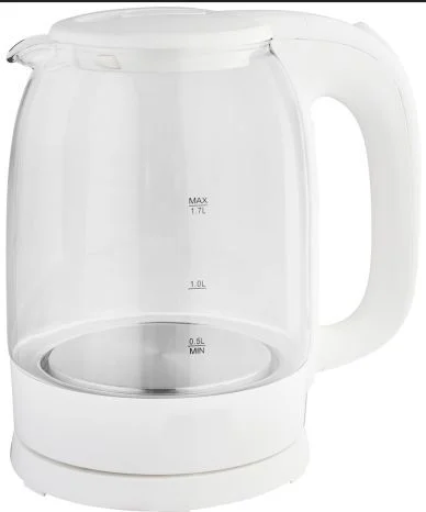1,7 л. Термостойкое стекло. Мощность 2200 Вт. Закрытый нагревательный элемент, Защита от включения без воды, Защита от перегрева, Фильтр от накипи Габариты изделия/упаковки 221.8* 156.3 * 230/21*18*23.8. Вес нетто/брутто 1,27/1,38