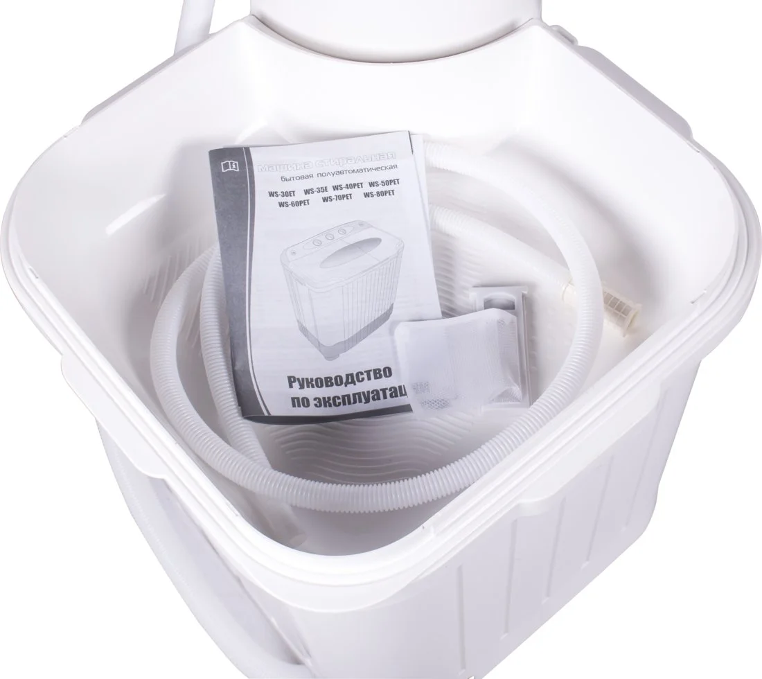Стиральная машина, крышка-тазик, шланг наливной, фильтр, руководство по эксплуатации, упаковка |