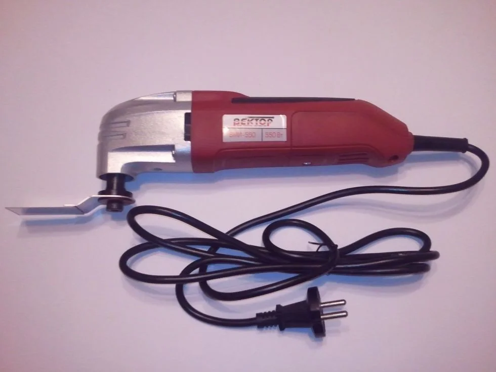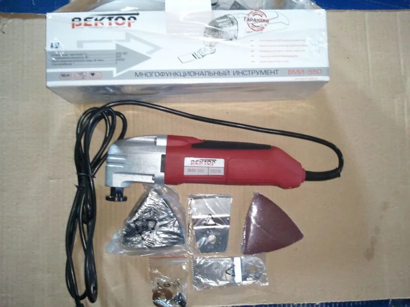 Универсальный многофункциональный инструмент Вектор ВМИ-550 предназначен для выполнения самых разнообразных работ как дома так и на производстве. Инструмент подойдет для резки дерева, металла, пластика и других материалов под любым углом включая вырезание фигурных отверстий.Также инструмент может применяться для шлифовки, полировки поверхностей, зачистки от старого клея или краски и многое другое,все зависит от установленной насадки.Металлический корпус редуктора увеличивает срок службы маятникого механизма реноватора Вектор, как и всего электрического инструмента в целом. Редуктор исполнен из магниевого сплава.Ребра жесткости на корпусе редуктора не только придают прочность реноватора, но и предотвращают случайное скольжение инструмента в руке. Насадки мультиинструмента используют европейский стандарт крепления. Вектор ВМИ-550 питается от сети и имеет двигатель мощностью 550 Вт. Насадка, установленная на резак совершает колебательные движения до 22000 кол/мин за счет чего и происходит шлифовка или резка материалов.Комплектация реноватора Вектор ВМИ 550 состоит из самого инструмента и самых необходимых насадок, наиболее часто применяемых в быту.