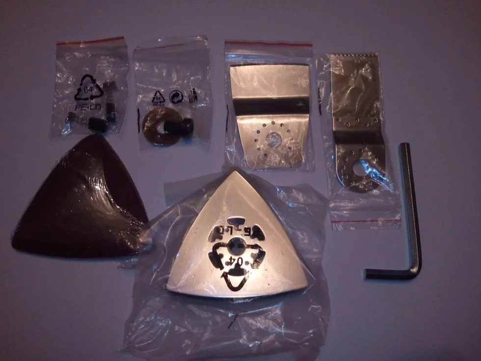 - 3 насадки (прямое пильное полотно, дельташлифовальная платформа)