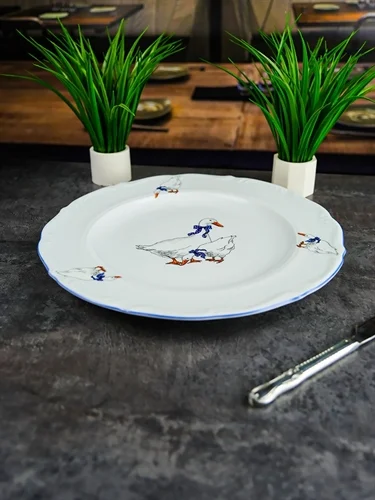 Круглое блюдо Repast «Гуси» (артикул 43515) — посуда из фарфора со специальным глазурованным покрытием.