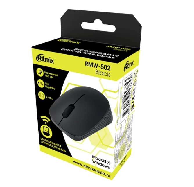 - Полноразмерная беспроводная оптическая мышь с двумя кнопками и колесом прокрутки