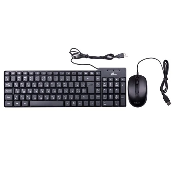 Ritmix RKC-010 - компактный проводной набор: классическая полноразмерная клавиатура + удобная мышь средних размеров. Совместима с Windows и Mac OS, интерфейс подключения — USB
