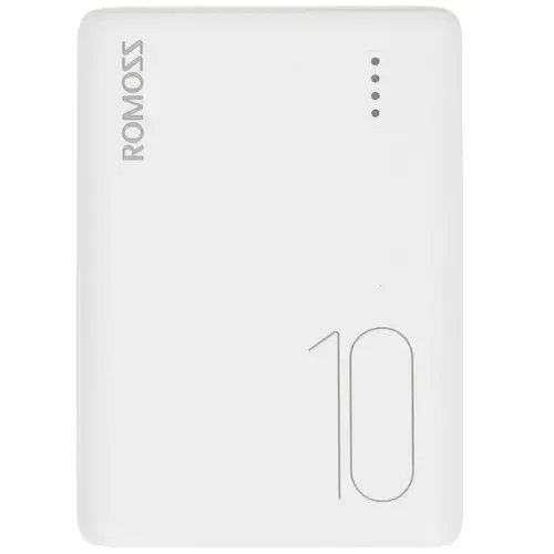 Портативный аккумулятор Romoss Simple 10 в изящном белом корпусе имеет универсальное назначение: он может подзаряжать смартфоны и планшеты любых производителей и брендов, если у них есть разъемы USB Type-C, Lighting, micro USB. В конструкции корпуса предусмотрено 2 интерфейса USB. Литиево-полимерный аккумулятор поддерживает опции быстрого и сквозного заряда. В то же время портативный аккумулятор Romoss Simple 10 оснащен собственным индикатором, который подскажет, когда ему самому будет необходимо пополнить ресурс.