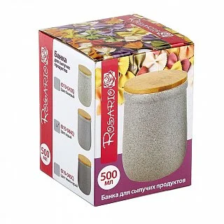 Судочки, банки, контейнеры, емкости » ROSARIO Банка для сыпучих продуктов 500 мл Ф19-044Q серая Банка для сыпучих продуктов Rosario 500 мл Ф19-044Q серая Производитель: ROSARIOМатериал: керамикаОбъем: 0-0.9Тип: банкаНаличие: Нет в наличииБонусы: 8 ₽ Код товара: 31946 нет в наличии Описание Параметры Объем 500 мл Описание Банка для сыпучих продуктов из высококачественной керамики Цвет: серый Бамбуковая крышка с уплотнителем Упаковка: цветная коробка Поделитесь ссылкой: