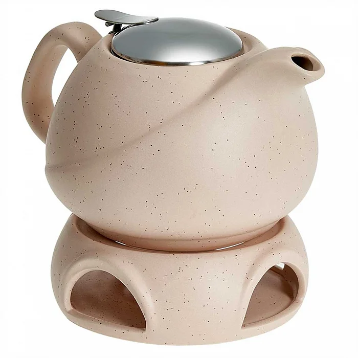 Чайник заварочный 800 мл с фильтром и подставкой Ф19-064R розовый