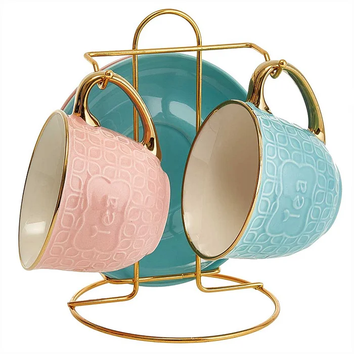 Чайный набор 4 предмета Ф11-013К/4 на металлической подставке, бирюзовый + розовый