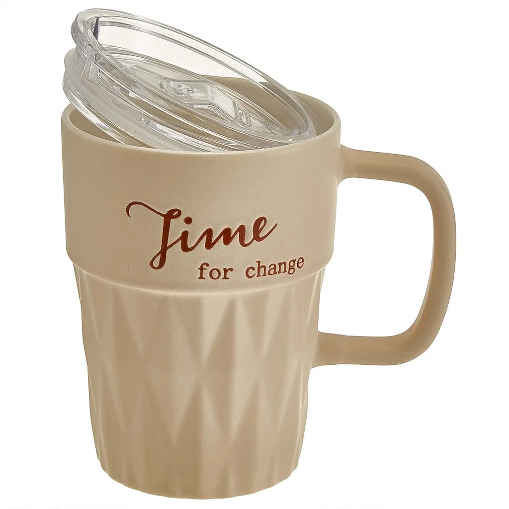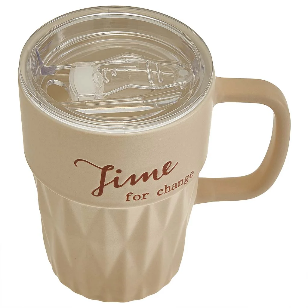 Кружка с крышкой и трубочкой Time for change (430 мл) Ф11-096L1 в цветной коробке, бежевый