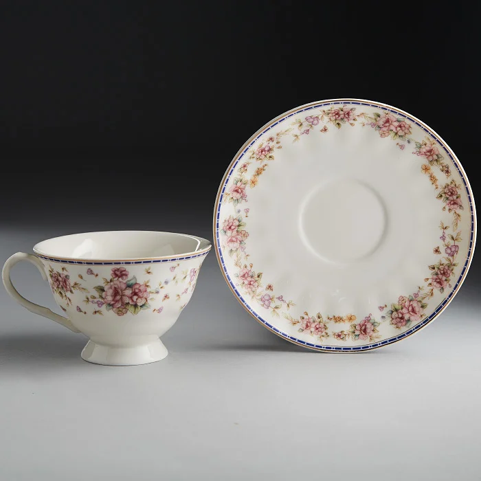 - Набор чайный из высококачественного фарфора с декоративным рисунком и золотой обводкой