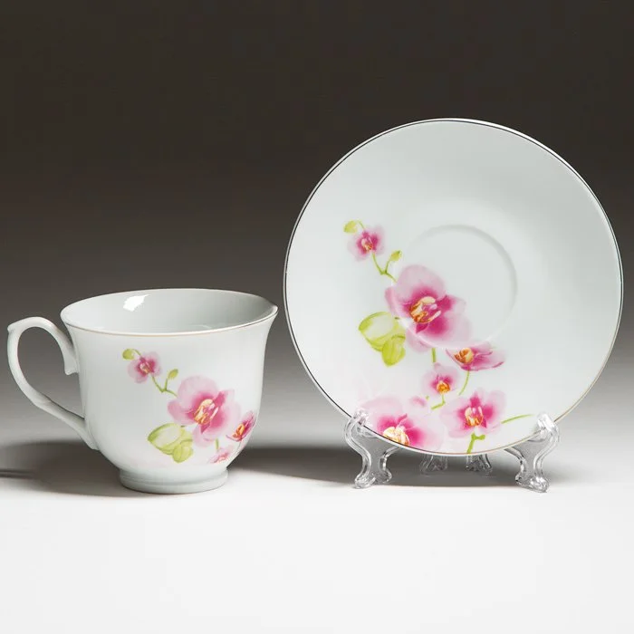 - Набор чайный из высококачественного фарфора с декоративным рисунком на металлической подставке