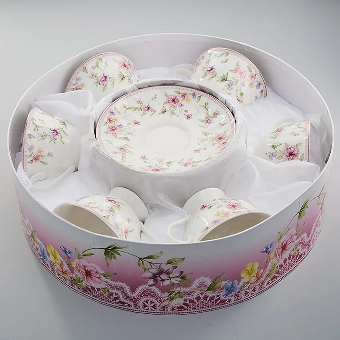- Набор чайный из высококачественного фарфора с декоративным рисунком и золотой обводкой