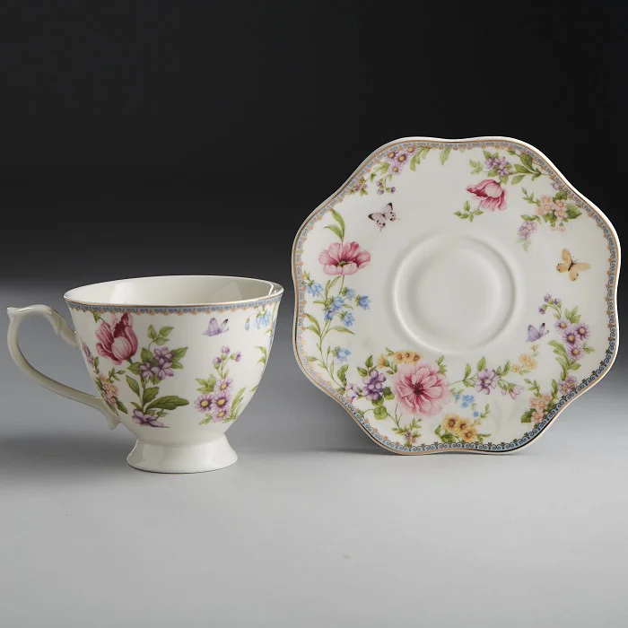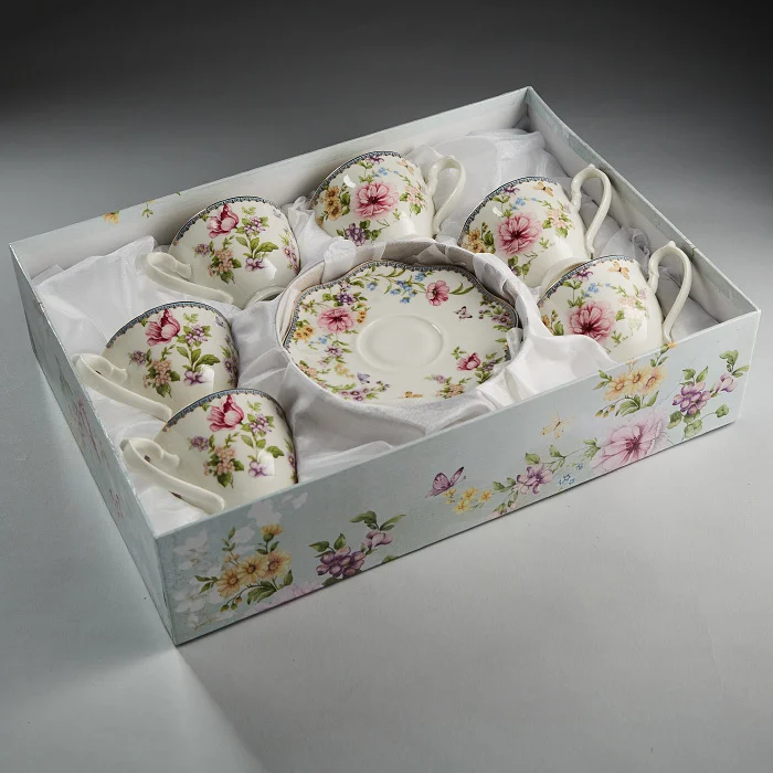 - Набор чайный из высококачественного фарфора с декоративным рисунком и золотой обводкой