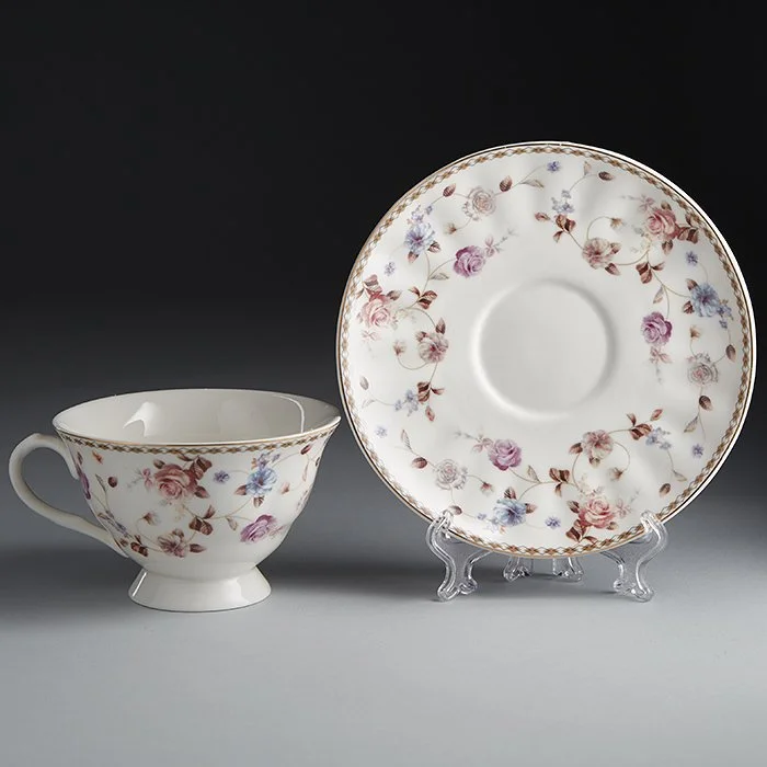 - Набор чайный из высококачественного фарфора с декоративным рисунком и золотой обводкой