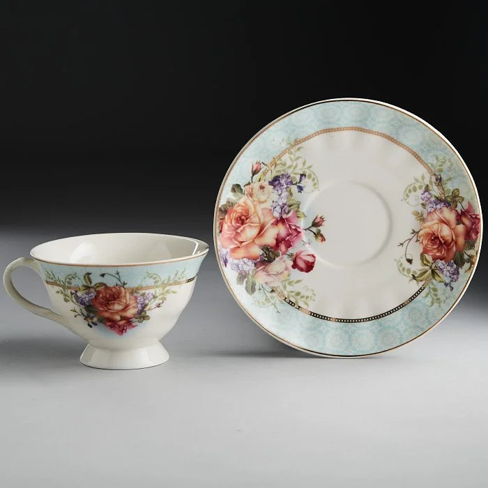 - Набор чайный из высококачественного фарфора с декоративным рисунком и золотой обводкой