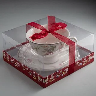 - Набор чайный из высококачественного фарфора с декоративным рисунком и золотой обводкой