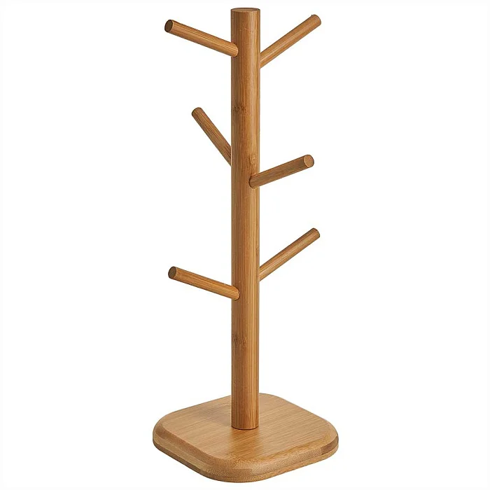 - Набор керамических кружек на деревянной подставке