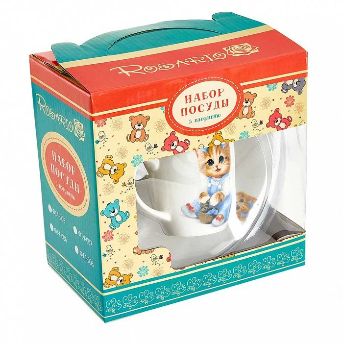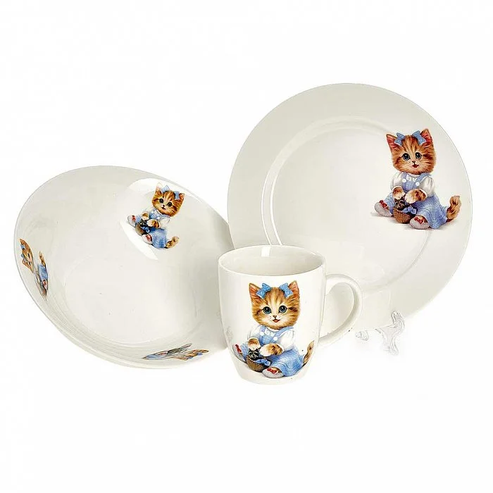 - Набор детской посуды из высококачественного фарфора с декоративным рисунком